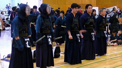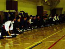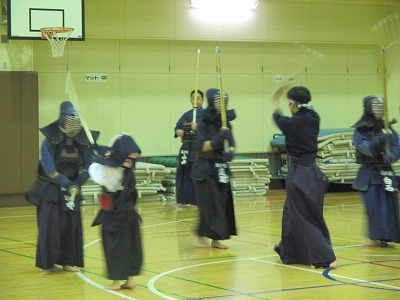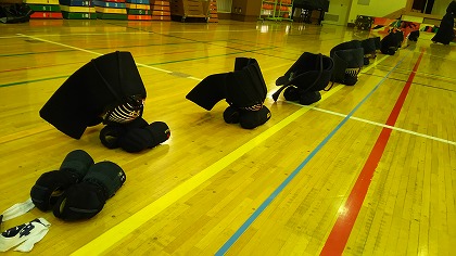 剣道は礼に始まり、礼に終わります。 まずは、皆で整列!! 「先生方に礼っ!!」 |