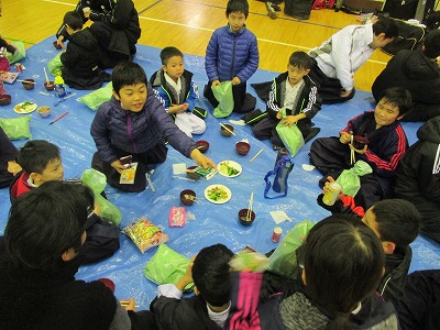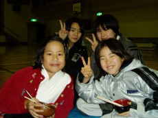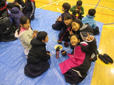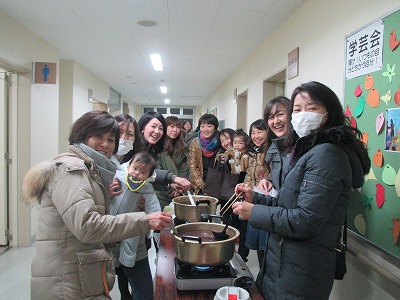 | ここから、ちょっと番外編!! 稽古初めの時に、お母さん方が作ってくれたお汁粉に大盛り上がり(笑) |