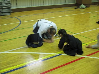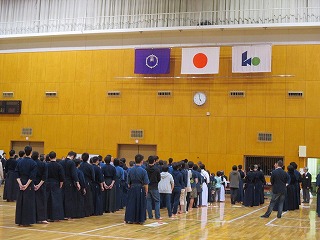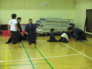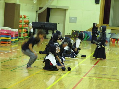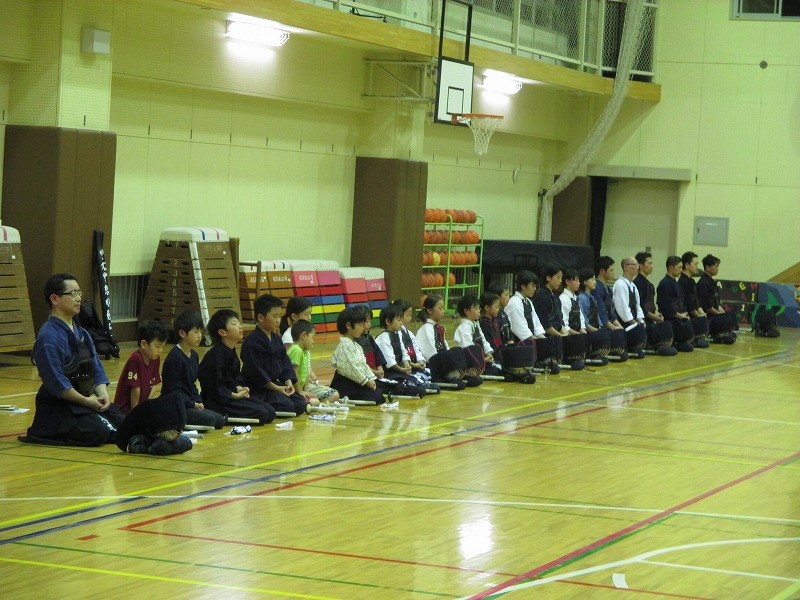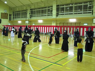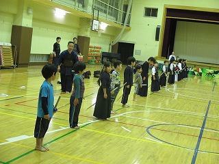 剣道は礼に始まり、礼に終わります。 まずは、皆で整列!! 「先生方に礼っ!!」 |
